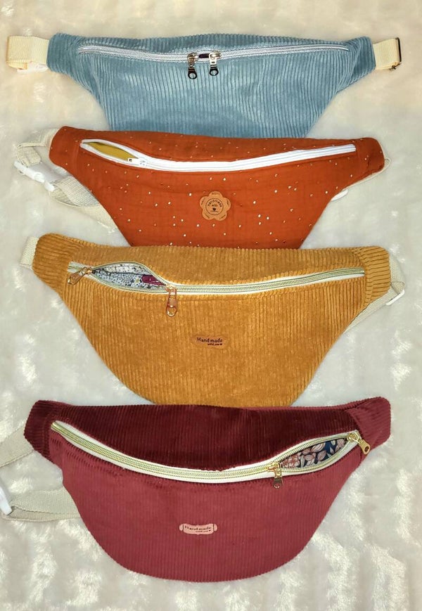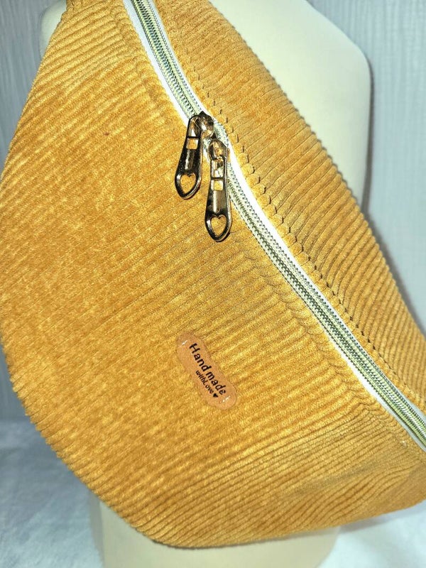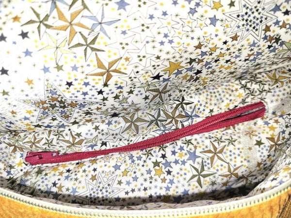 Superbe Banane velours côtelé moutarde et liberty Adelajda ocre